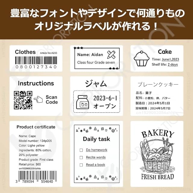 【種類豊富な対応ラベル】セパレートタイプや連続タイプなど豊富なラインナップ。用途に合わせて自分だけのオリジナルラベルが作成可能。専用ラベルは耐水性・耐油性・耐久性に優れており、キッチンや洗面所でも安心してお使いいただけます。