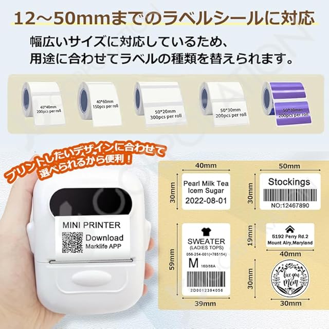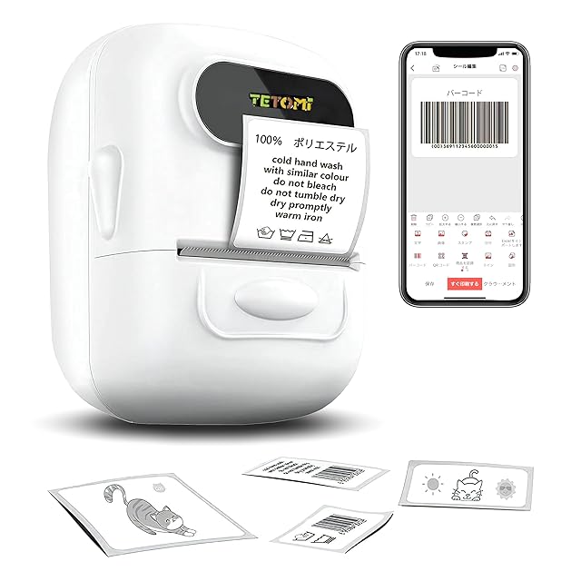 TETOMI 公式 ラベルプリンター P50 感熱 スマホ 専用アプリ 編集 対応 Bluetooth接続 ラベルライター 値札 業務用 ラベルメーカー 宛名 ラベル用サーマルプリンター シール バーコード (ホワイト)