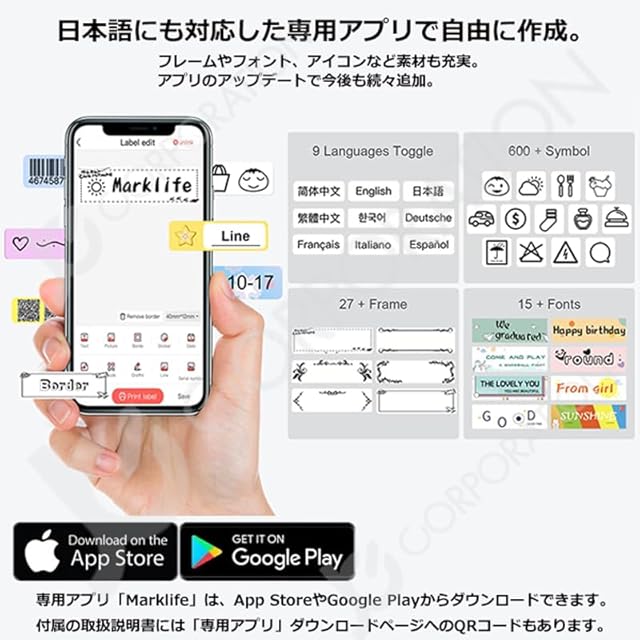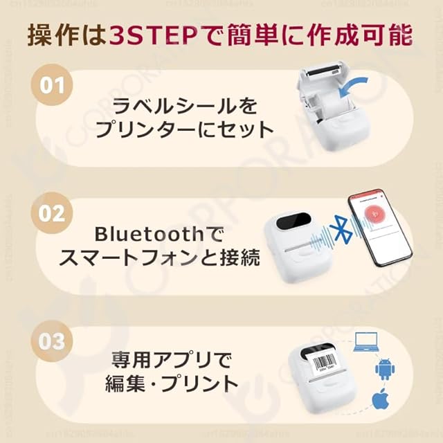 【専用アプリでラクラク】アプリとBluetoothでかんたん接続。テキスト(文字)、イラスト、表、画像、線、バーコード・qrコードなど専用アプリで自由にデザインが可能。