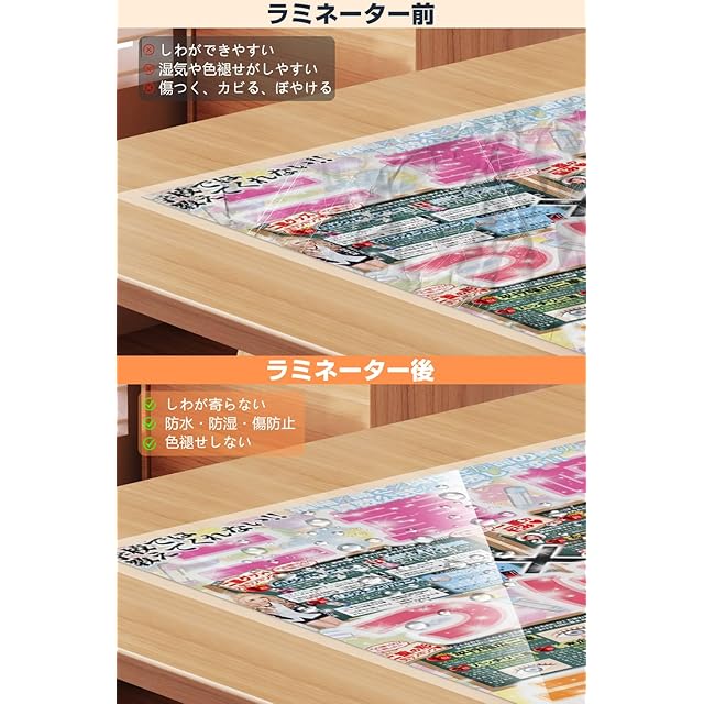 【使用前後の比較】未加工の写真や書類、証明書などは、長期間保管していると劣化・色あせ・湿気・カビ・シワなどが発生しやすくなります。しかし、ラミネーターを使用することで、これらの問題を防ぐことができます。1台あれば、写真の劣化や色あせ、湿気などへの対策が簡単にでき、年月が経っても綺麗な状態のまま保存することが可能です。