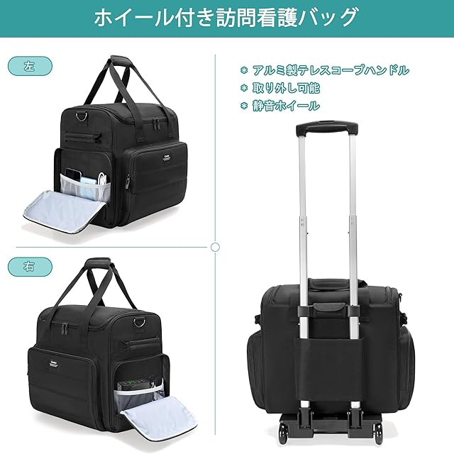 CURMIO 救急箱 教師バッグ 大容量 ローリング 訪問看護バッグ 書類入れ 薬入れ 出張 訪問 会社 学校 ブラック