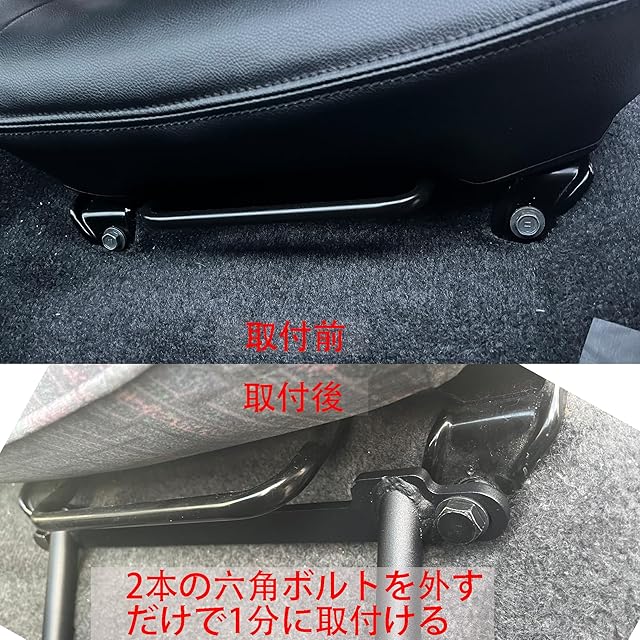簡単に取付:M10✖30L の2個六角ボルトで固定、車体への穴あけ加工不要、女性でも簡単に取付け出来。エンジンフードカバー着けていても取り付け出来ます、もちろん点検でも邪魔せずエンジンフードを開けられます。多段階調節のラチェットの部分もしっかりしていて、足を乗せても安心できる。