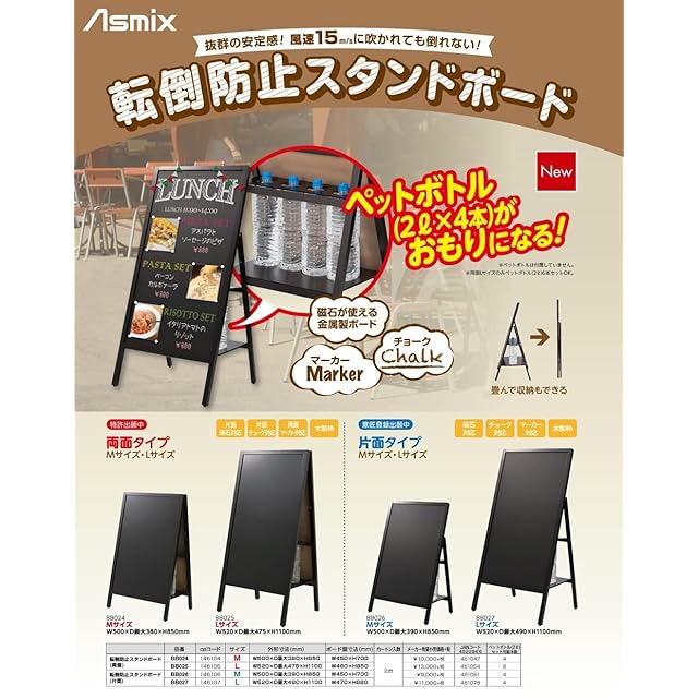 風速15m/sにも耐えられる転倒防止ブラックボード。強風でも倒れない