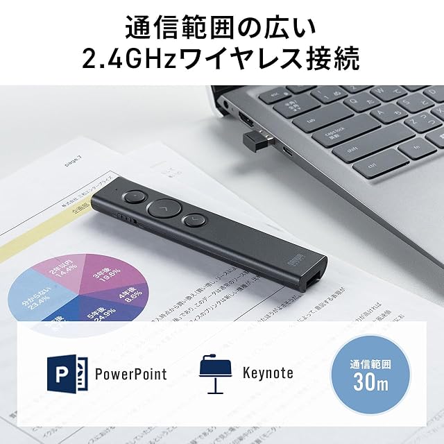 USB A レシーバー を パソコン に接続して、プ レゼン ソフトを操作することが出来ます。