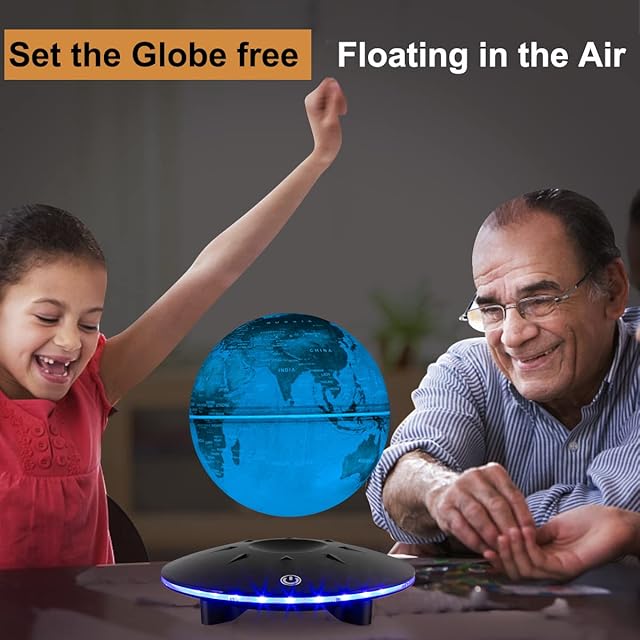 Vnemofey 地球儀 フローティンググローブ、LEDライトベース、磁気浮上グローブランプボール世界地図ディスプレイガジェット、ホームルームとオフィスデスクの装飾、クリエイティブなギフト (7色ライト)