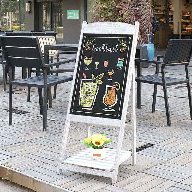 【転倒防止】看板の下に棚が付いているので、重めのプランターなどを置いて安定性を高めます。少し風が強いでもで倒れません。お花や商品をディスプレイ飾り棚としても使えます。