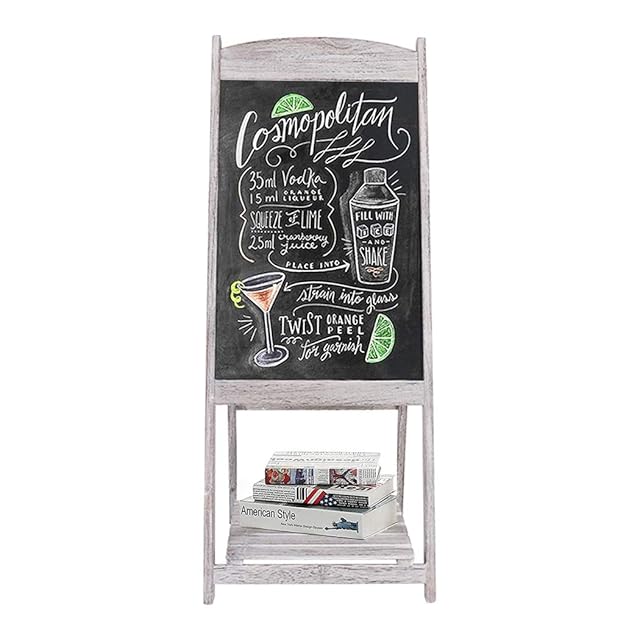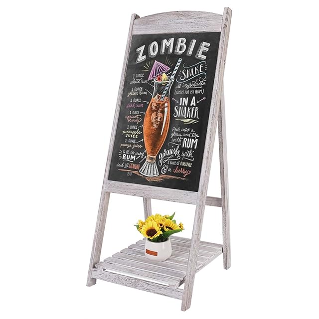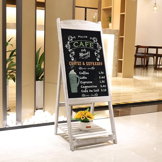 立て看板 ウェルカムボード ブラックボード A型 看板 スタンド 室内/屋外 アンティーク調 マグネット ボード メニュースタンド 棚板付き カフェ 店舗 スタンドボード 黒板 グレー