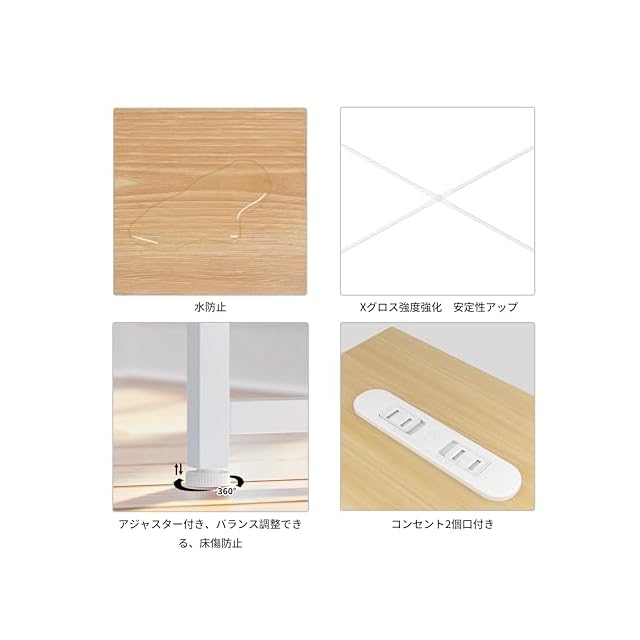 【安全構造】:日本デザインに基づいた頑丈な構造、天板と棚板はネジ止めにより確実に固定されており、長期間にわたって緩みを防止しています。スチールフレームは他社製品と違って、2箇所にX型補強材が配置し、強度アップのサポートがあります。耐震転倒防止パーツも付いてます。