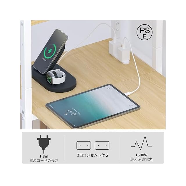 【オペレーション機能】:2口コンセント付き、パソコン在宅ワークなどすごく便利です。左右でラックの位置をチェンジすることが可能です。フクを装備しており、かばんなどを掛けるのは便利です。