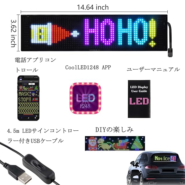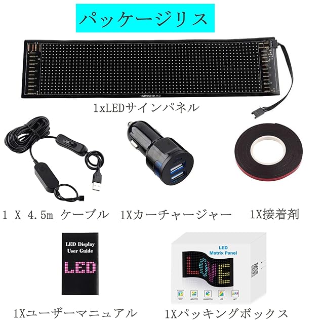 ✨[パッケージリスト] 1X柔軟LED電光掲示板 1XLEDサインコントローラー 1X 4.5m ケーブル 1X車載充電器 1X接着剤 1X説明書