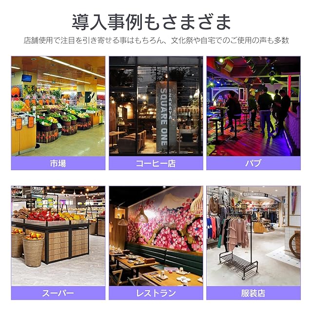 【注目度抜群表示】16色の発光パターン:色の変更や点灯・点滅の操作はリモコンで簡単に操作できます。16色選べ、4種類の点滅モード、5段階の明るさの調整が可能で、案内表示や広告デザインを見やすくおしゃれに演出できます