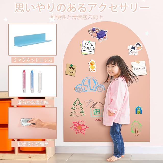 3in1マルチファンクション:マグネット黒板ボード シートとして表面に磁石が吸着可能で、マグネット式おもちゃやメモを簡単に貼り付けて、子供たちの創造力を無限に刺激! チョークで自由に描いて消せるライティングボードになって、子供たちの絵画才能を存分に発揮できます。落書きやメッセージボードとしても使用可能で、子供部屋のデコレーションにもなるマグネットチョークボード!
