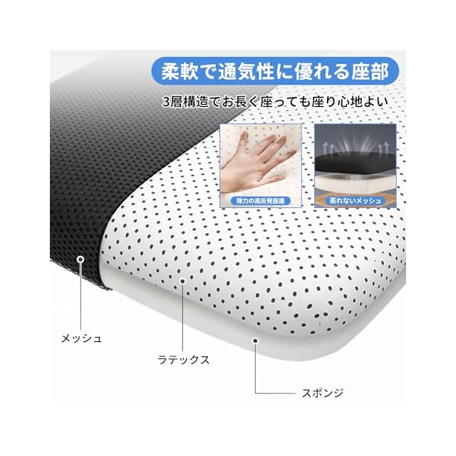 【高反発クッション・通気メッシュ生地】高反発ラテックス素材のクッションは、柔らかさと弾力性を兼ね備え、弾性坐圧分散構造により、長時間座っても疲れにくい仕様です。通気性と放熱性に優れたメッシュ素材を背もたれと座面に採用。汗や蒸れを防ぎ、快適な座り心地をキープします。夏場や暖房の効いた冬場でも蒸れずに快適な座り心地を実現します。テレワークや勉強用、オフィスワークに最適です。