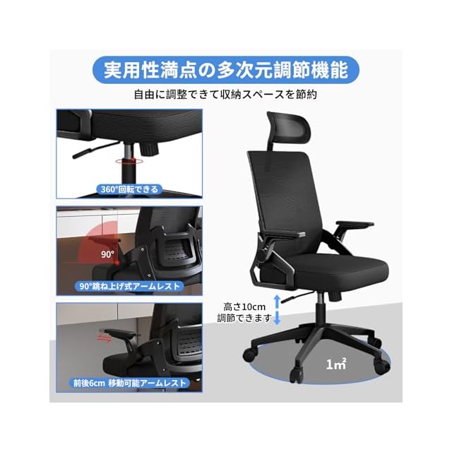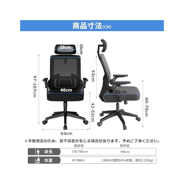 【10分間で簡単に組立可能・安心の品質保証】オフィスチェアのサイズは幅60×奥行60×高さ107-117cm(座面高42-52cm)。日本語の組立説明書と工具が付属しており、約10分で簡単に組み立て可能。安心保証:万が一商品到着後、初期不良・破損・取り付け方法が不明等の場合はお気軽にご連絡ください。輸送中に、激しい操作により製品が破損したり、汚れたりする可能性があります。そのような問題が発生した場合は、無料で交換いたしますので、お気軽にご連絡ください。