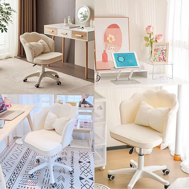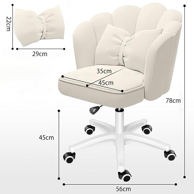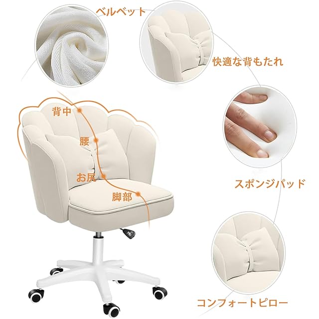 LBFXQテーブルと椅子オフィスチェアファッションデザイン 北欧スタイルカジュアル メイクアップチェアホームワーク ウエストサポートデザインホワイト360度回転 昇降機能付き 腰クッション キャスター付き 事務椅子テレワーク コンパクト ホームオフィス 勉強 在宅勤務 (ホワイト)