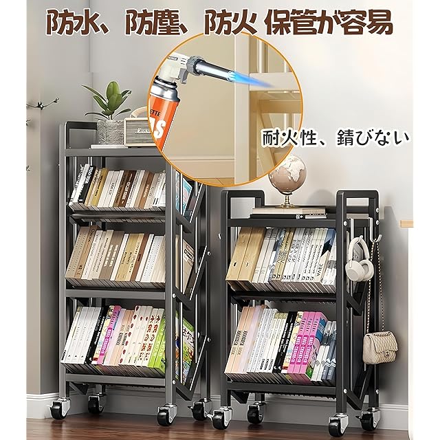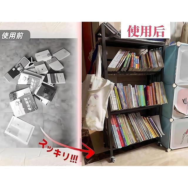 【キャスターをそうちゃくして移動がスムーズ】リミットキャスターが付いているので、本の収納状態も簡単に移動できます。また、掃除やレイアウトの変更も簡単です。キャスターは床を傷つけにくい。移動の必要がないときは固定できます。
