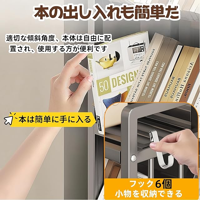 【斜めのデザインで取り出しがしやすい】棚板が斜めになっているので、本や書類の背表紙が見え、出し入れもスムーズ。かさばるファイルの片付けに便利なファイルラックです。また、本やフォルダーを繰り返し取り出しても傷が残りにくく、汚れたら柔らかい布などでさっと水拭きできるので、メンテナンスも簡単です。
