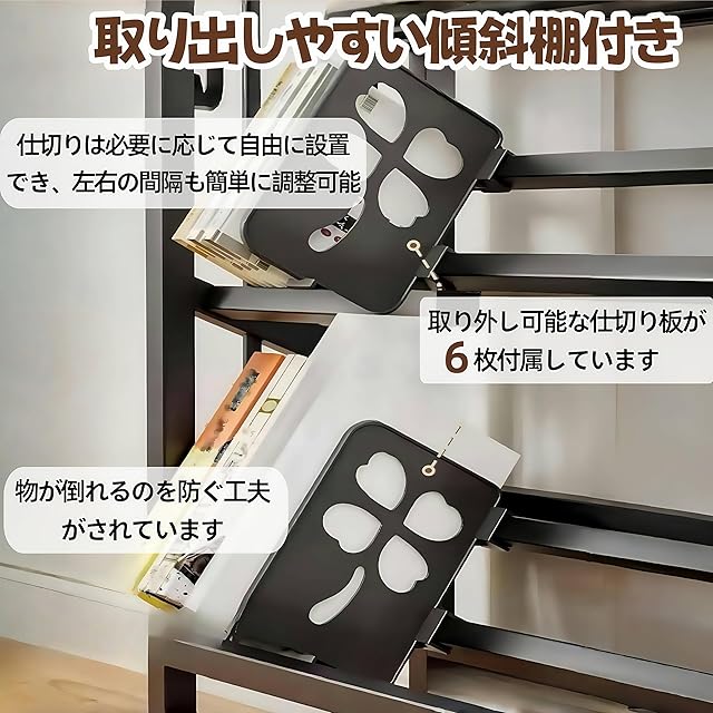 【独立したパーティション付き】取り外し可能な仕切り板が6枚付属しています。仕切りは必要に応じて自由に設置でき、左右の間隔も簡単に調整可能。物が倒れるのを防ぐ工夫がされています。
