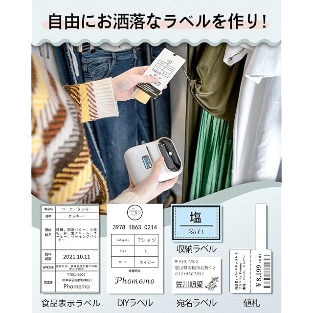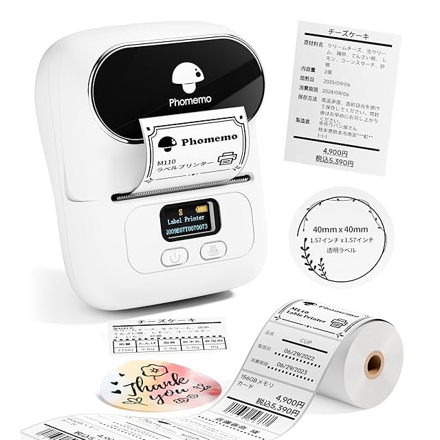 Phomemoのラベルプリンター「M110」は、スマホやタブレット、PCから接続して印刷できる多機能サーマルプリンターです。郵便宛名、値札、食品表示、梱包発送、アドレス、ラッピング、DIYラベル、作業、冷蔵庫収納、FBAラベル、配送ラベル、整理収納、名前ラベル、葉書等を印刷できます。生活と仕事に役に立ちます
