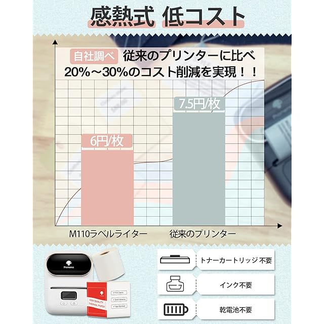 Phomemo M110 感熱ラベルプリンター スマホ・PC対応 ラベルライター 値札プリンター 業務用プリンター ラベルメーカー 宛名ラベルプリンター ラベル用サーマルプリンター シールプリンター バーコードプリンター Bluetooth接続 郵便宛名/値札/食品表示/梱包発送/アドレス/ラッピング/DIYラベル/作業/冷蔵庫収納/配送ラベル/整理収納/名前ラベルに適用 充電式
