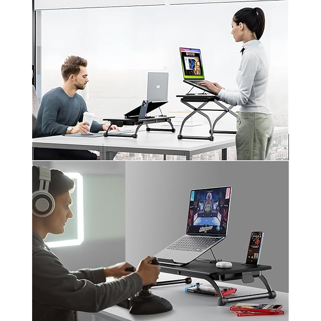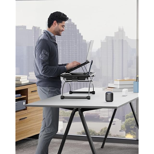 [ワンタッチで高さ調節] このデスクトップスタンドは、座っている状態から立っている状態に数秒で移行できます。 革新的なシンプルタッチ高さロック装置で、快適なレベルに調節できます。 4.7~7.0インチの携帯電話に対応する携帯電話スロットが付いています。