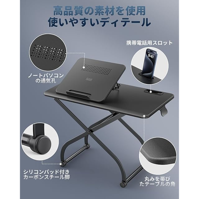 SAIJI スタンディングデスク 卓上 ノートパソコン昇降式テーブル 軽量 6段階折畳みテーブル 机上 天板サイズ56.8×28cm 昇降範囲12~42cm 便利な収納 組立不要 角度調節可能なラップトップスタンド付き