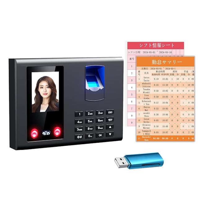 日本会社専用 タイムレコーダー 勤怠管理 顔/指紋認証タイムカードレコーダー 日本語音声 認証精度が99.9% 高機能自動集計 日本語表記 コスト削減 不正打刻防止USBメモリが付き 操作簡単 出退勤管理やすい 日本語説明書 2年保証 [並行輸入品]