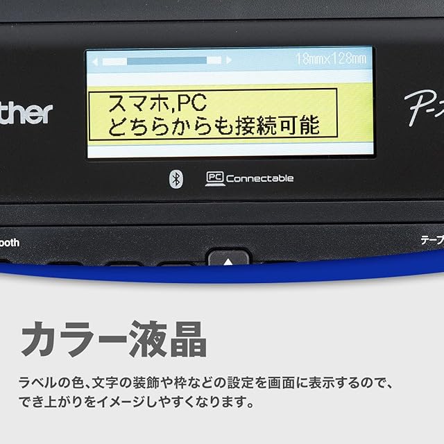 スペック・機能:カラー液晶、オートカッター、テープカセットカラー検知、最高30mm/秒の高速印刷、ローマ字入力・かなめくり入力