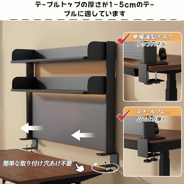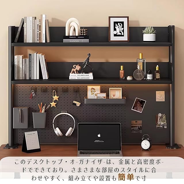 【抜群の収納力】デスク 棚ダブルスクリューで固定し、より強固にします。積層板の高さは調節でき、物品の高さの必要に応じて、容易に拡張することができます。小物類の整理はもちろん、PCモニター収納ラックとしてデスク上の用途も広がります。