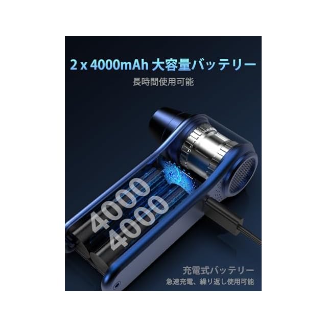 【大容量バッテリー、長時間使用可能】Secheer充電式エアダスターには、4000mAhの大容量バッテリーが2本内蔵されており、一度の充電で何度も使用できます。Type-C充電式で、パソコンやモバイルバッテリーなどからも充電可能で、いつでもどこでも充電できるのが非常に便利です。また、コードレスデザインのため、ケーブルに縛られることなく、屋内外を問わず自由に使用できます。