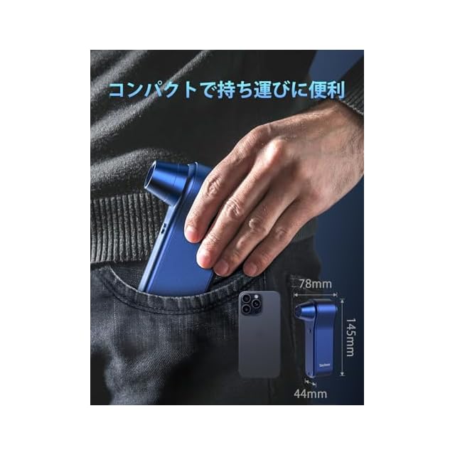 Secheer 電動エアダスター 超強力 エアダスター 最大風速65m/s 4段階風量調整 合金製 ミニジェットファン コードレス 充電式 大容量バッテリー 小型 多用途 キーボード/OA機器/車内/エアコン掃除 除塵 空気入れ 水滴飛ばし 家庭/オフィス/アウトドア用 ブルー
