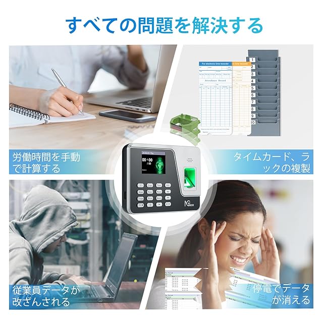 【 届いたらすぐに使える! 】むずかしい設定がないので、電源プラグを差し込んで、マシンと従業員の情報を設定するだけで、長時間に使用できます。YouTubeのビデオまたは日本語のマニュアルと日本語のプロンプトインターフェイスに従って設定を完了することができます。