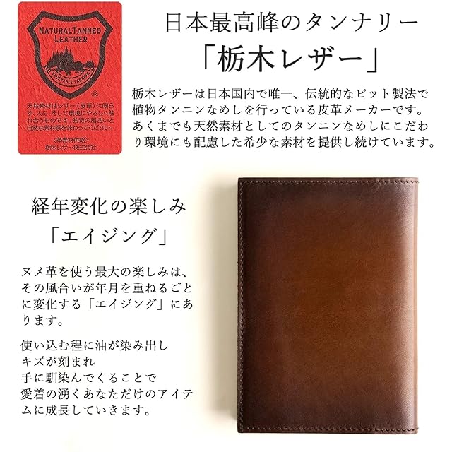 ✅【こだわりの素材】栃木レザーを使用。植物性のタンニンのみでなめし、芯までじっくりと染め上げることで本革の自然な風合いを残した高級レザーです。使い込むほどに手の油が染み込み、古ぼけた風合いが増し、革本来の経年変化をお楽しみいただけます。