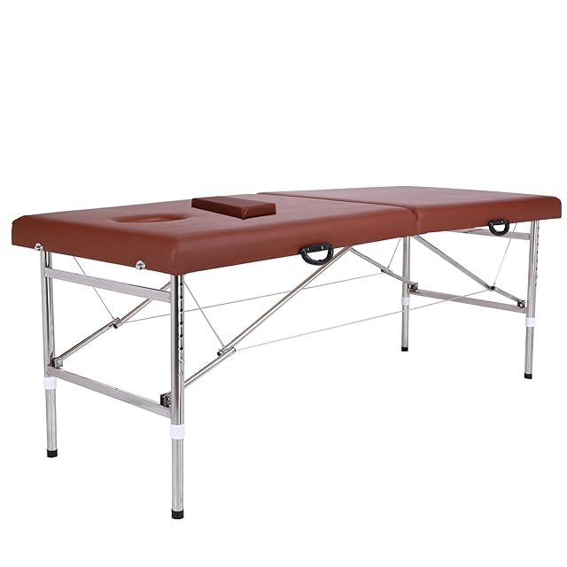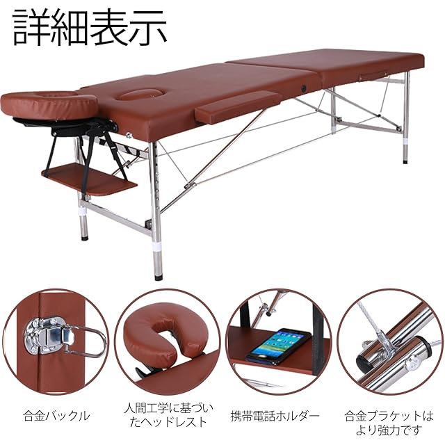 ポータブル マッサージベッド 軽量 折りたたみ 200kg 耐荷重 高密度 スポンジ 快適 美容院 エステサロン リラクゼーション ホームスパ 180x60x65cm プロフェッショナル スタイリッシュ ケア (ブラウン, 角型ヘッドレストです)
