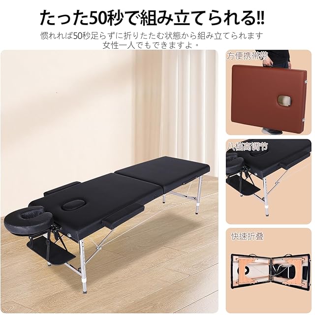 【頑丈で信頼性の高い耐荷重マッサージベッド】この軽量折りたたみ式マッサージベッドは、合金製フレームを採用し、全体の重量はわずか13.5kgで、手軽に持ち運べる設計となっています。高さは8段階に調整可能で、個々の使用者の要望に合わせて柔軟に変更できます。表面には耐久性に優れたPUレザーを使用しており、長時間の使用にも快適さを保ちます。また、折りたたみ式で、収納や移動が簡単にできるため、プロの施設や自宅での使用にも便利です。このマッサージベッドを使用して、リラクゼーションの時間をより楽しく、効果的に過ごすことができます。