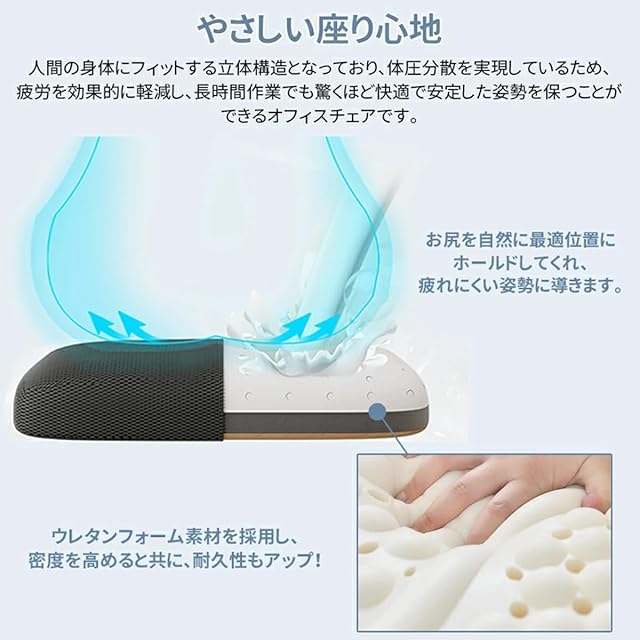 ✅【やさしい座り心地】オフィスチェアの背もたれはメッシュ素材を採用して、伸縮性があり、通気性に優れています。夏場や暖房の効いた冬場でも蒸れずに快適な座り心地を実現します。座面はウレタンフォーム素材を採用し、心地よいクッション性とリラックス効果があります。まるで高級ソファのような座り心地が体験できます。