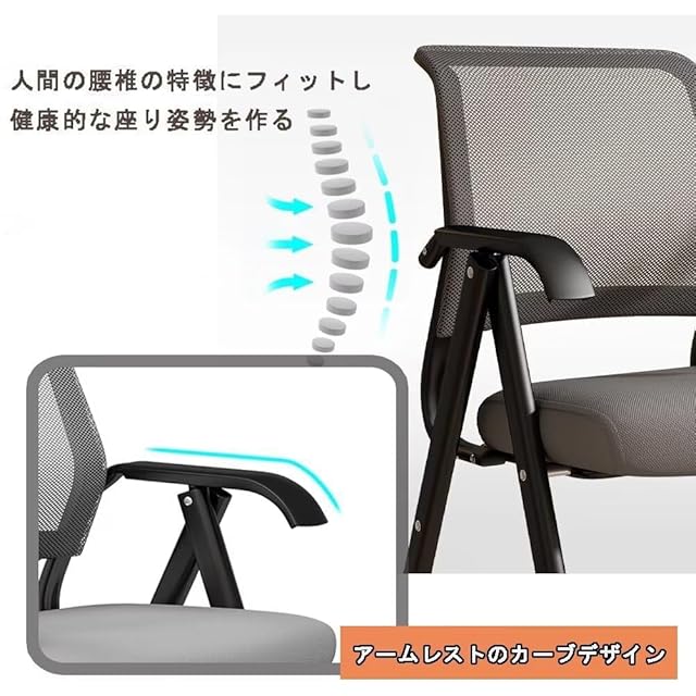 【デザイン】折りたたみ式で設置面積が小さく、収納スペースが節約できます。三角形の炭素鋼の管フレーム、均一で安定した力。腰椎の角度に適合し、自然に背骨をまっすぐにします。 湾曲したアームレストのデザインは、常に腕をサポートすることができます。 ノンスリップフット、滑らず安定したチェア。