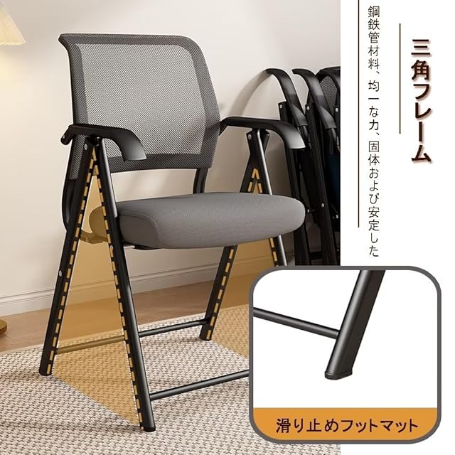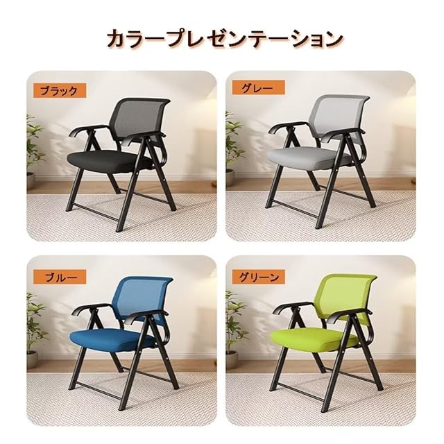 KASABULAC ミーティングチェア オフィスチェア 折りたたみ 肘掛け付 背もたれ付き 事務椅子 オフィス レセプション トレーニングルーム 会議室用 組立不要