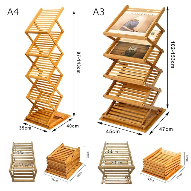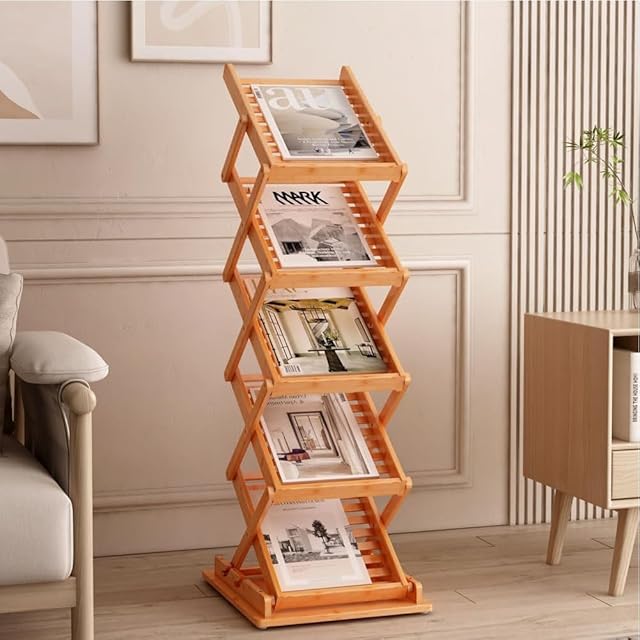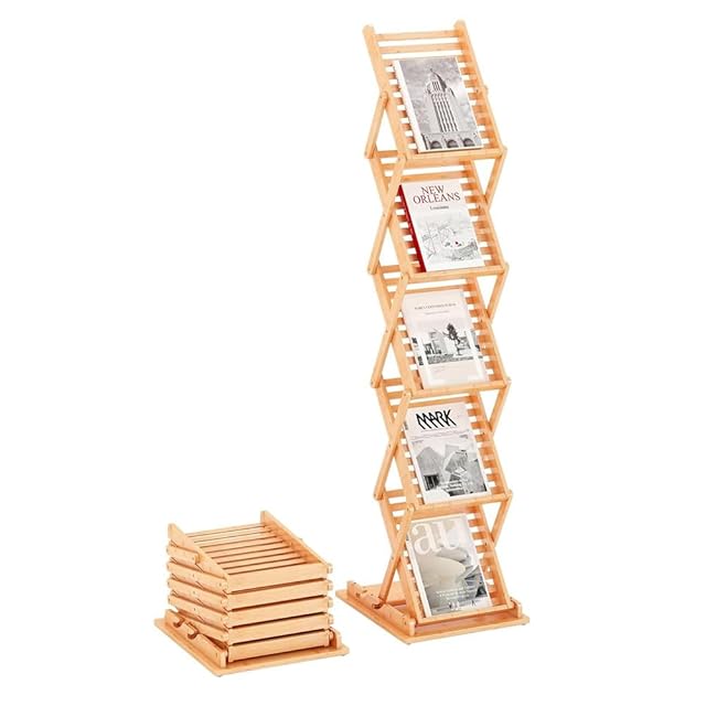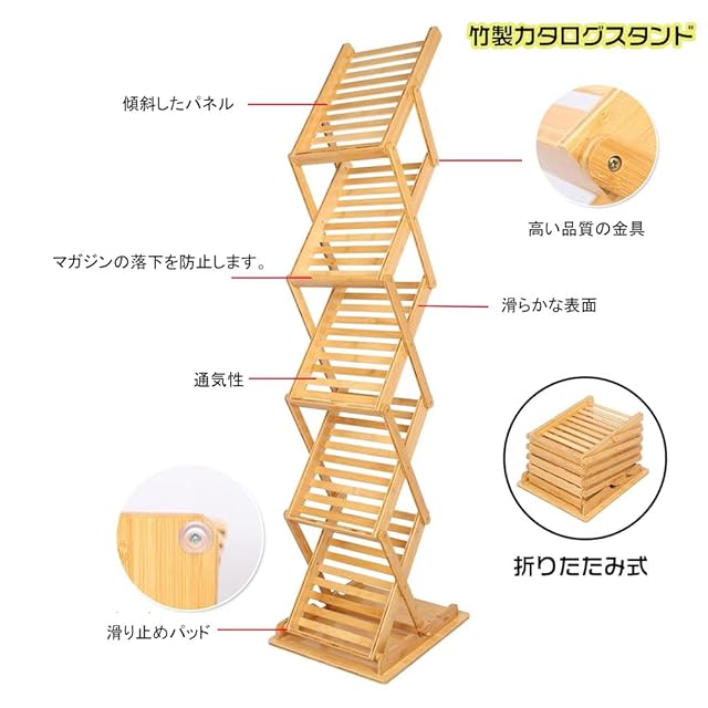 Jumei カタログスタンド マガジンラック 折りたたみ式 5段 竹製 片面 パンフレットスタンド カタログラック おしゃれ 雑誌ラック 組み立て不要 イベントや催事に (A4サイズ)