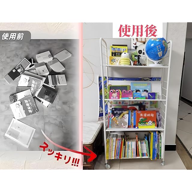 【多用途の本棚】4段のオープンラックは、様々なアイテムを整理するのに十分なスペースを持っています。本棚やリビングの飾り棚として、書籍や写真、小物、鉢植えなどを置くことができます。シンプルで現代的デザインで、各種の室内装飾にハマります。