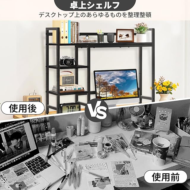 Rxakudedo デスク上収納ラック 卓上ラック 収納ラックラック 棚 多機能 办公收纳棚 長さ114CM 右側 3段