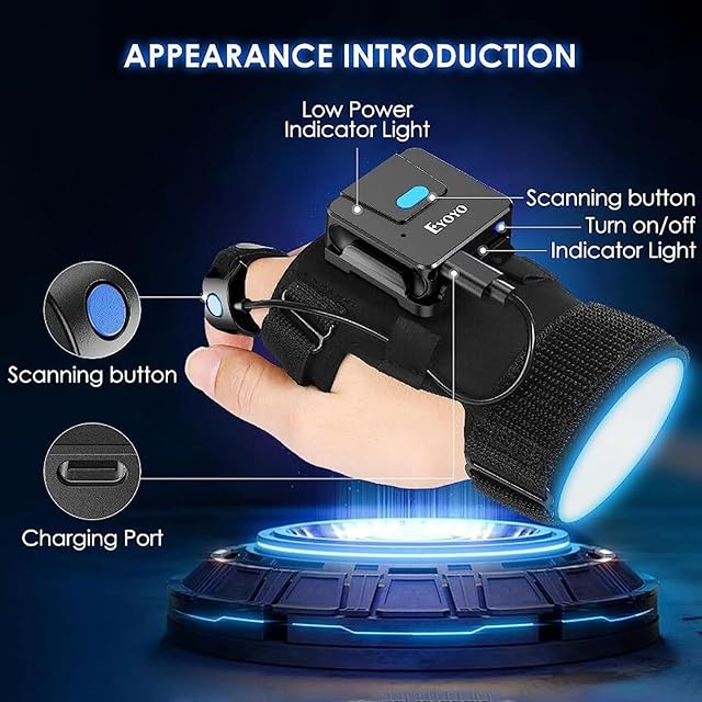 互換性のあるデバイス: グローブ リング バーコード スキャナは、ラップトップ、PC、POS、スマートフォン、タブレット、iOS 電話やコンピュータなどのさまざまなデバイスに簡単に接続でき、Windows XP 7 8 10、OS X、Linux などと完璧に連携します。その他の一般的なシステム。