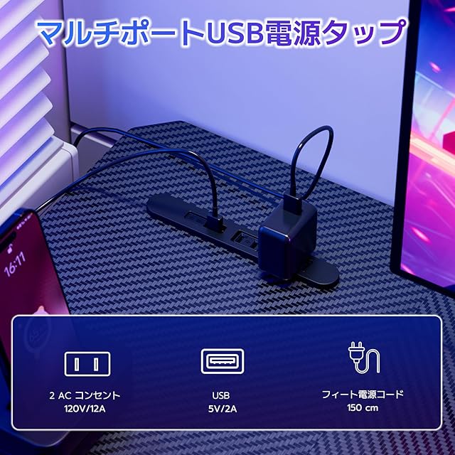 【高級感と機能性が融合】洗練されたデザインと高級感あふれるカーボン調天板が魅力の、Acrolixゲーミングデスク。左右入れ替え可能なL字型、便利なコンセント、大容量収納バッグなど、使いやすさを極めた一台です。