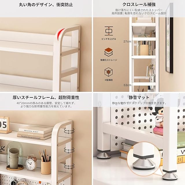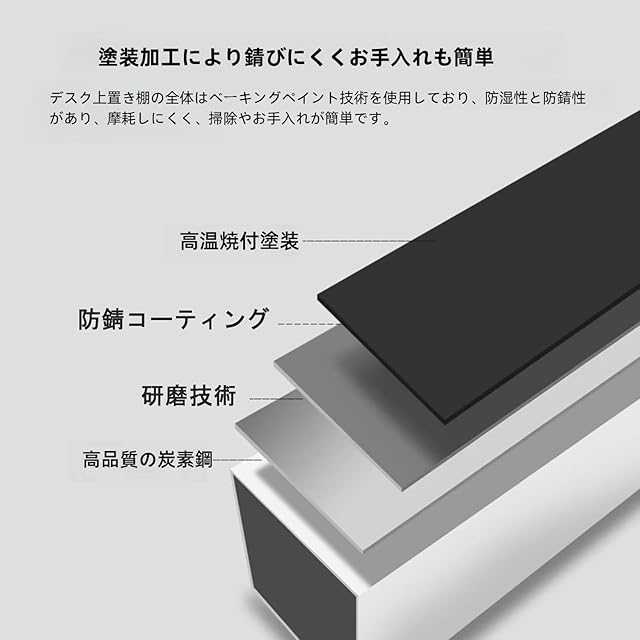 ★【高品質な素材を採用】机上ラックは丈夫な炭素鋼を使用しており、安定して重力が強く、本をたくさん置いても問題なし!キズや汚れにも強く、長期間使用することができる机上ラックです。本、文房具などの小物がテーブルの周りにきれいに保管されています。 デスク上の空間を有効活用することができる机上ラックです。
