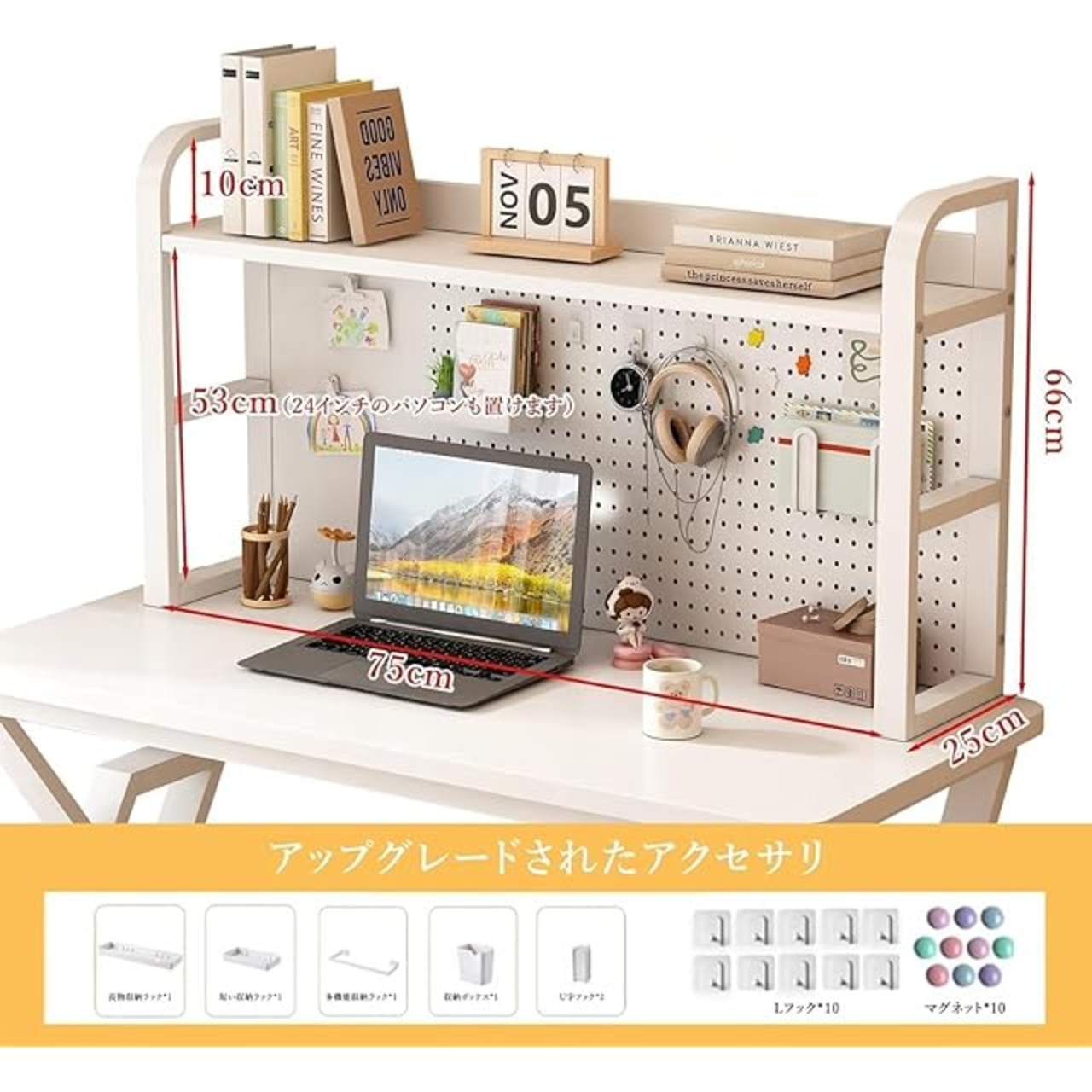 Lasola机上ラック 卓上ラック 卓上本棚 デスク上置き棚 デスク上収納ラック有孔ボードが付き 小物入れ 書類 収納 オフィス事務用品 文房具 デスクシェルフ ほんだな 整理 ブックスタンド 組立式 (75cm*25*93cm-2段式) (75cm*25*66cm-1段式)