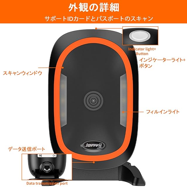 【1D / 2D / QRバーコードスキャナー】デスクトップバーコードスキャナーは、1Dバーコード、2Dバーコード、QRコード、UPC / EAN、Code 39、Interleave 2 5、Code 93、Code 128、Coder Bar、Industry 25、Matrix 25、PDF417、Data Matrixと互換性があります。USB バーコードリーダーは、店舗、スーパーマーケット、オフィス、ロジスティクス、倉庫、電子決済、図書館など、さまざまなシナリオで使用できます。