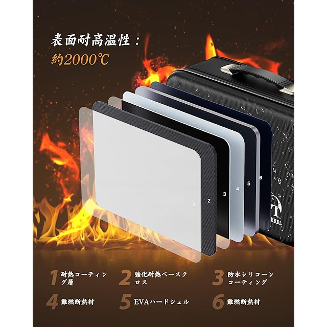 【高品質な防火防水素材、耐久性抜群】外層は防火防塵シリコン複合素材を使用し、800℃の高温に耐え、SGS認証を取得。防水防塵機能も備えており、悪天候でも安心してご利用いただけます。
