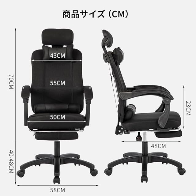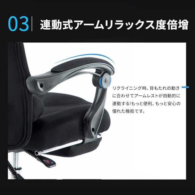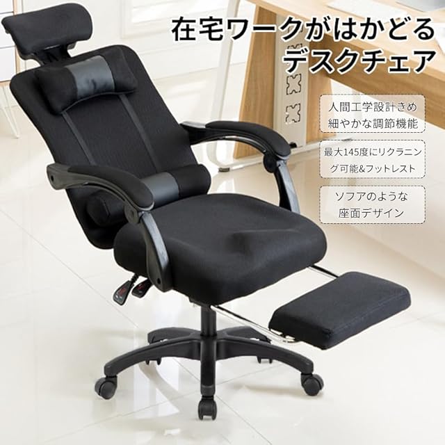 【背もたれ調節機能】リクライニング機能(145度までリクライニング可能)、椅子に座ったままでくつろぐことができます。レバー一つで簡単に背もたれを調節でき、作業とゲームプレイの姿勢の変化や体格差に応じた最適なサポートを実現します。オフィスでの休憩や仮眠にも最適です。
