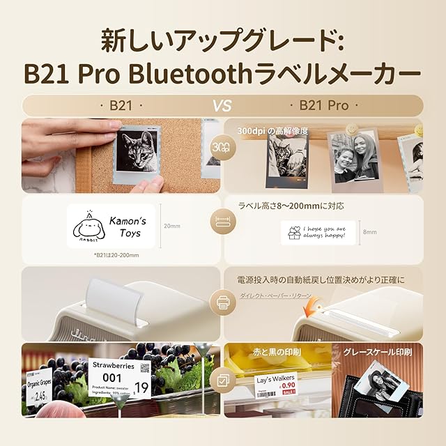 NIIMBOT B21Pro サーマルプリンター スマホ対応 ラベルライター 感熱ラベルメーカー Bluetooth接続 値札プリンター 小型 使いやすい 300DPI高精細印刷 用紙自動戻し AndroidとIOS対応 USB充電式 写真アルバム/手帳/メモ/買い物リスト/学習ノートに適用 専用アプリ ロール紙1個付き 日本語取扱説明書付き ホワイト