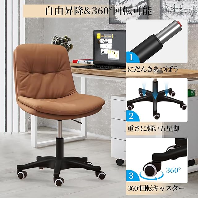 [EdoErgo] オフィスチェア デスクチェア コンパクト 疲れない ワークチェア パソコンチェア 勉強椅子 360度回転 昇降高さ調節可能 椅子 静音PUキャスター 北欧 テレワーク 事務 学習 勉強 在宅 ワーク BOY01 (米白棕レザー+黑足)
